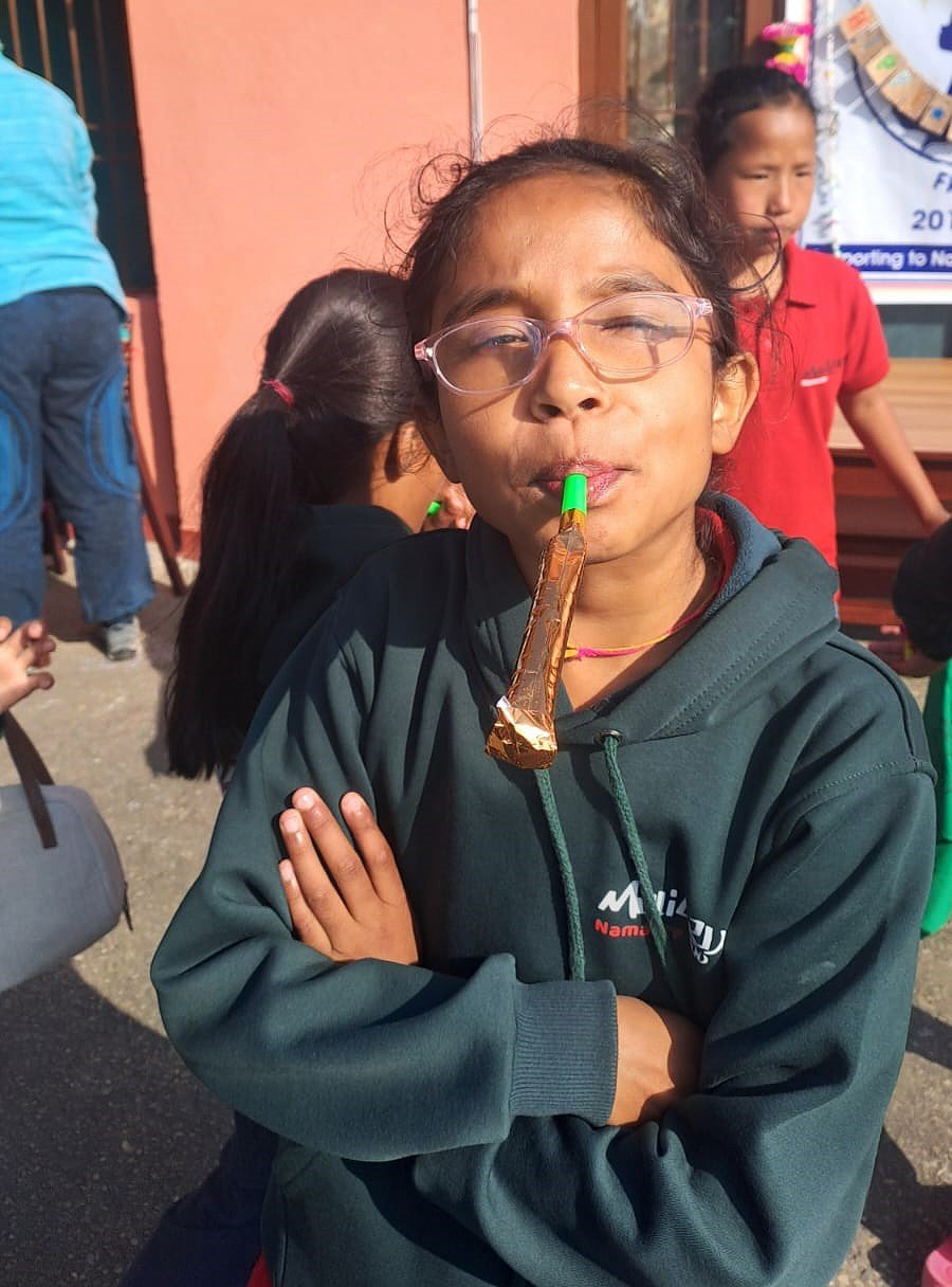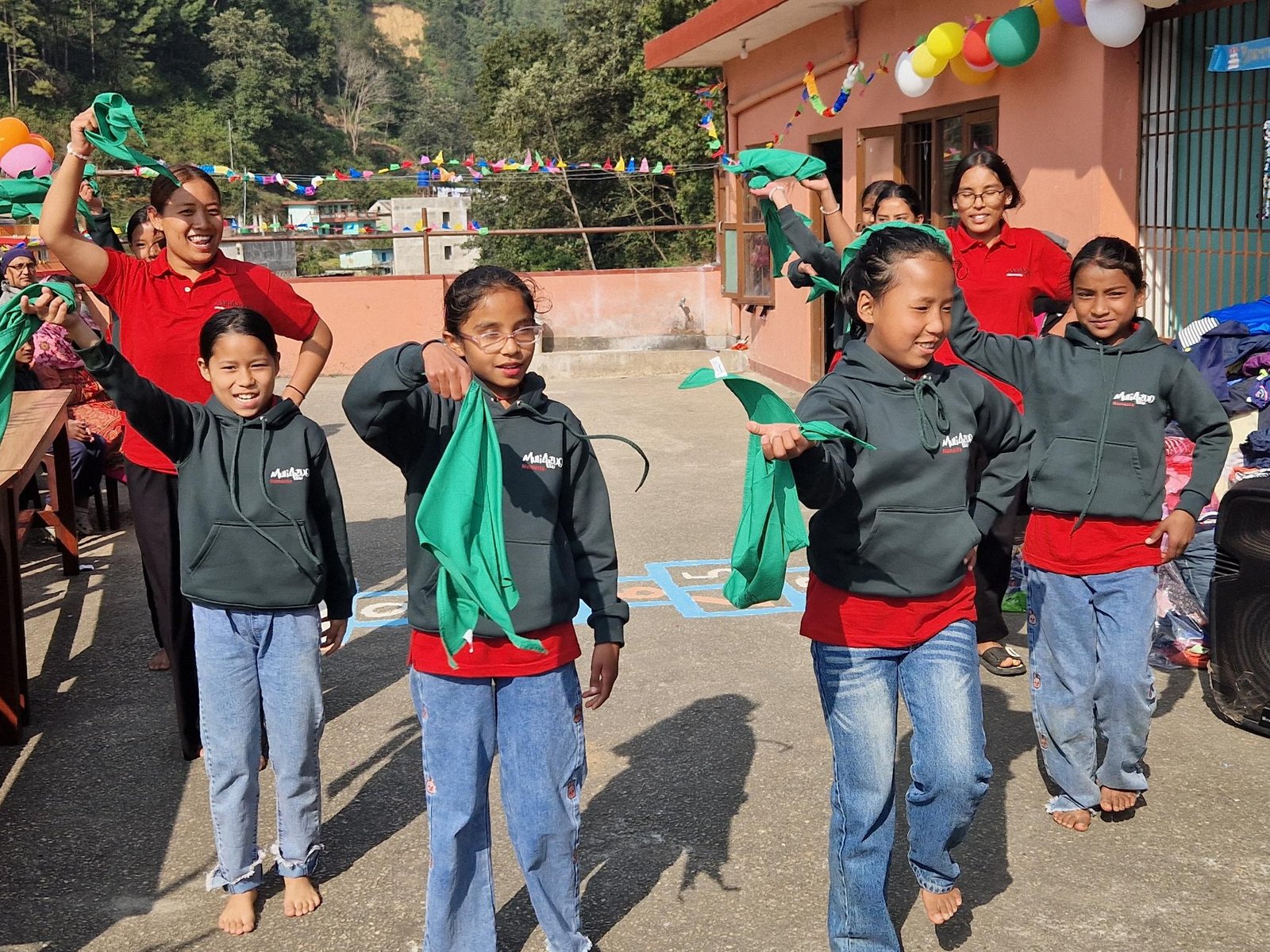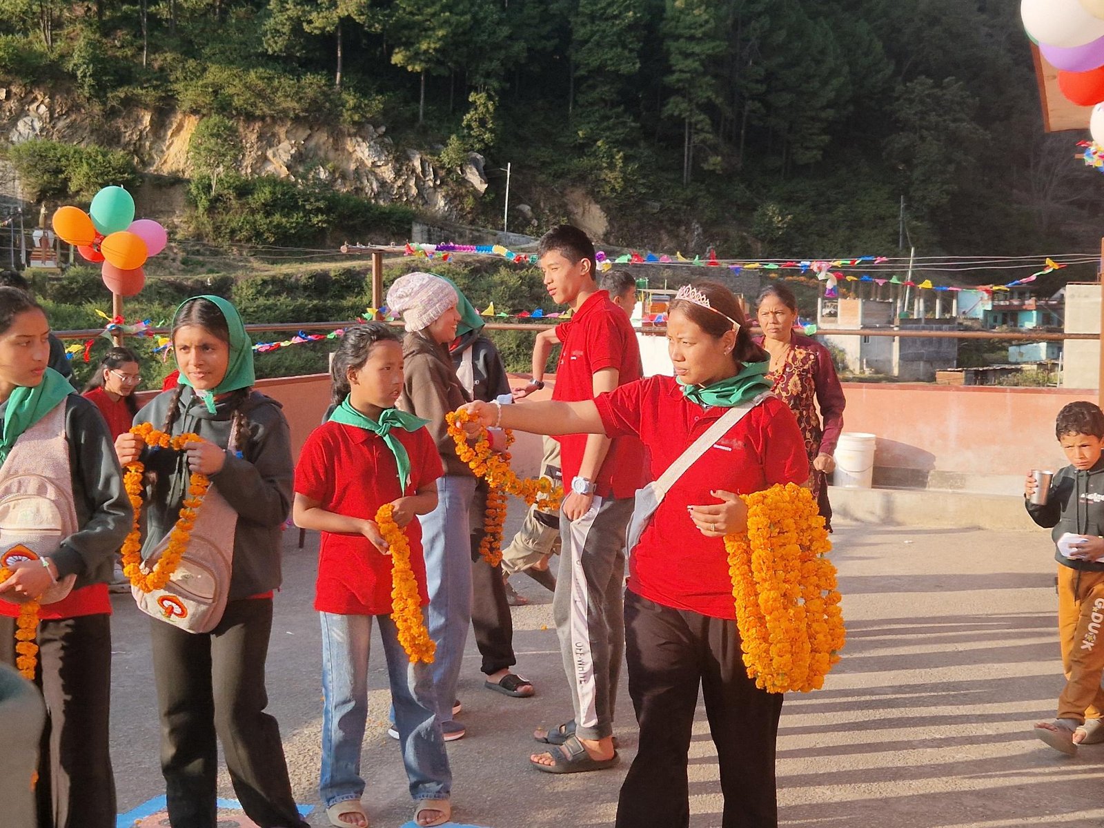 Les enfants de Namaste Children Nepal nous accueillent avec des colliers confectionnés par eux.
