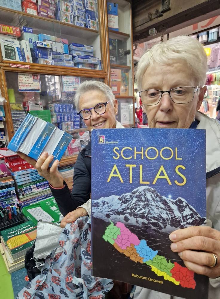 Nous avons trouvé « le petit prince » en népali et en népali/anglais, des dictionnaires anglais, des atlas…etc.