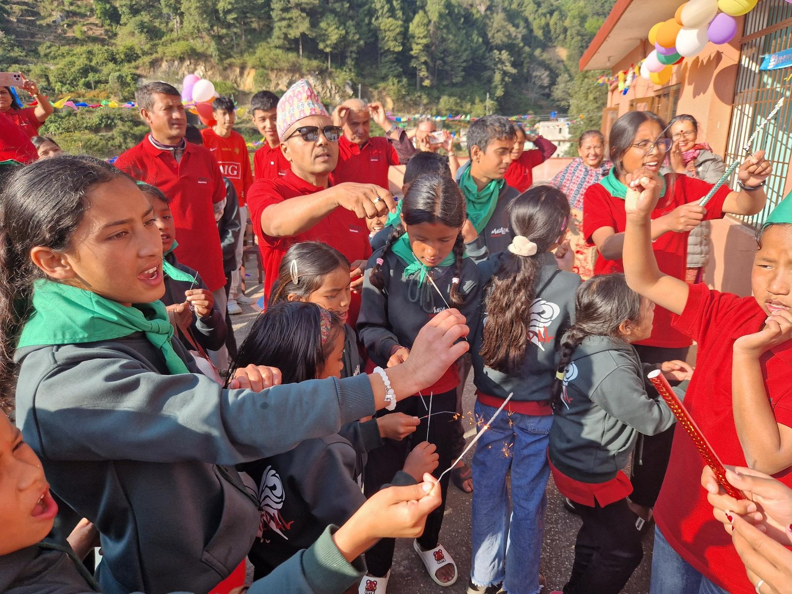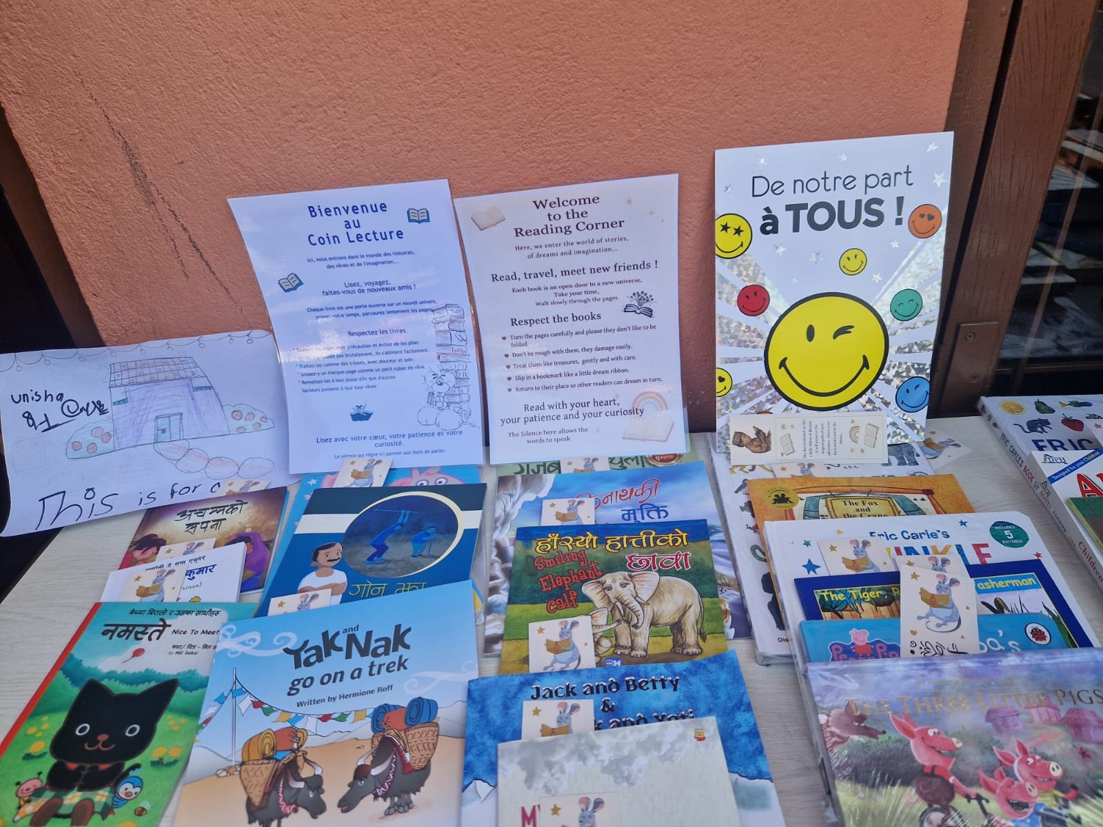 A cette occasion, nous avons offert aux enfants, du rêve, au travers de livres, ainsi que le joli meuble fabriqué spécialement pour eux. Livres en népali pour les petits, en népali/anglais pour les moyens et en anglais pour les grands.