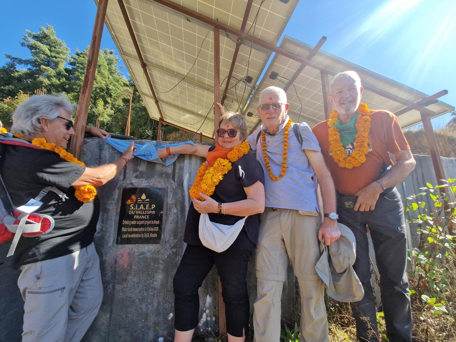Encore une bien belle journée à l’est de Katmandou dans le beau village de Japhe et sa grande citerne réalisée cette année avec des robinets, qui ont complètement changé la vie des autochtones. Ainsi qu’un petit abri bus. Nous avons encore été reçus comme des « rois ».