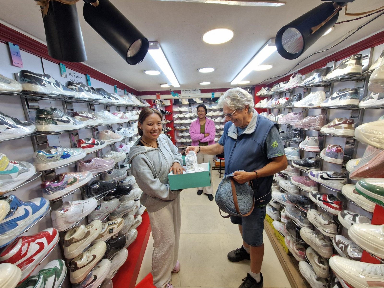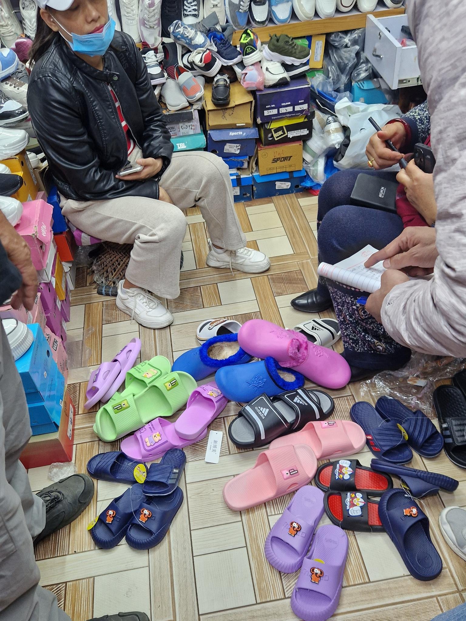 L’achat des 26 paires de claquettes fut un grand moment…. de patience.